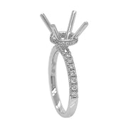 18kt white gold micro prong set round brilliant diamond under-halo semi-mount for round stone.