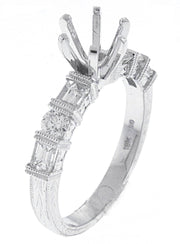18kt white gold channel set round brilliant diamond and baguette diamond semi mount for round