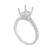 18kt white gold micro prong set round brilliant diamond semi-mount for oval stone.