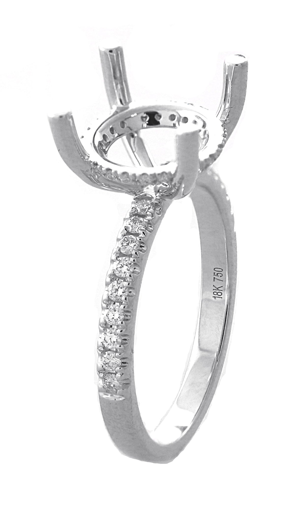 18kt white gold micro prong set round brilliant diamond semi-mount.