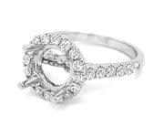18kt white gold micro prong set round brilliant diamond round halo semi-mount.
