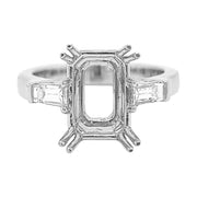 18kt white gold 8 prong emerald semi-mount with channel set baguette diamond on each side.