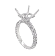 18kt white gold micro prong set round brilliant diamond emerald semi-mount with 3D shank.