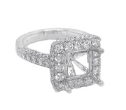 18kt white gold micro prong set round brilliant diamond semi-mount with 3D cushion halo and shank.