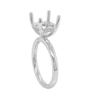 18kt white gold semi-mount with micro prong set round brilliant diamond on the gallery.