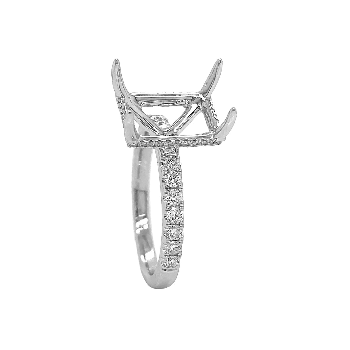 18kt white gold micro prong set round brilliant diamond radiant semi-mount.