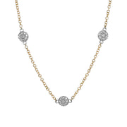18kt yellow and white gold micro pave set round brilliant diamond multi-cluster diamonds-by-the-inch necklace.