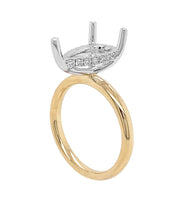 18kt yellow and white gold micro prong set round brilliant diamond semi-mount for pear shaped stone.