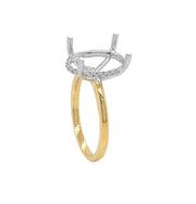 18kt yellow and white gold micro prong set round brilliant diamond semi-mount for oval stone.