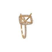 18kt yellow gold micro prong set round brilliant diamond halo semi-mount for emerald stone.