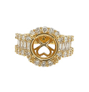 18kt yellow gold channel set baguette and micro prong set round brilliant diamond semi-mount.