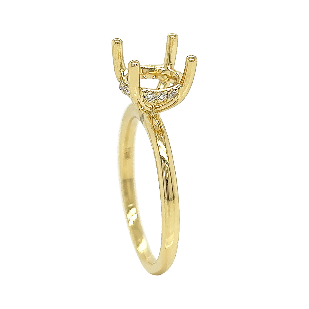18kt yellow gold semi-mount with micro prong set round brilliant diamond gallery for round stone.