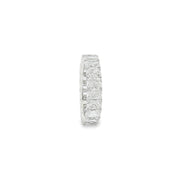Platinum mutual prong set laboratory grown radiant cut diamond eternity band.